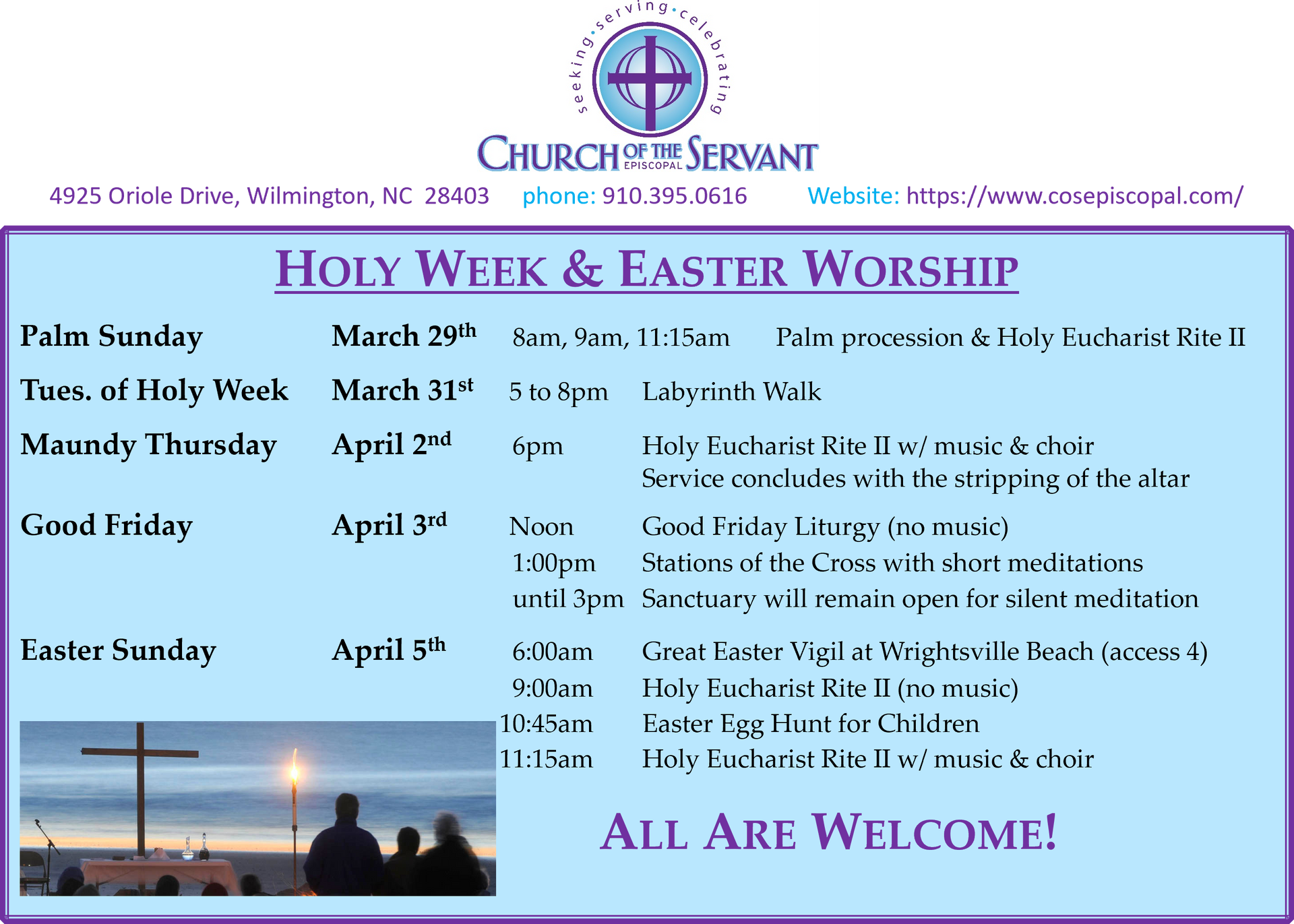Sunday worship times: 8am, 9am and 11:15am
